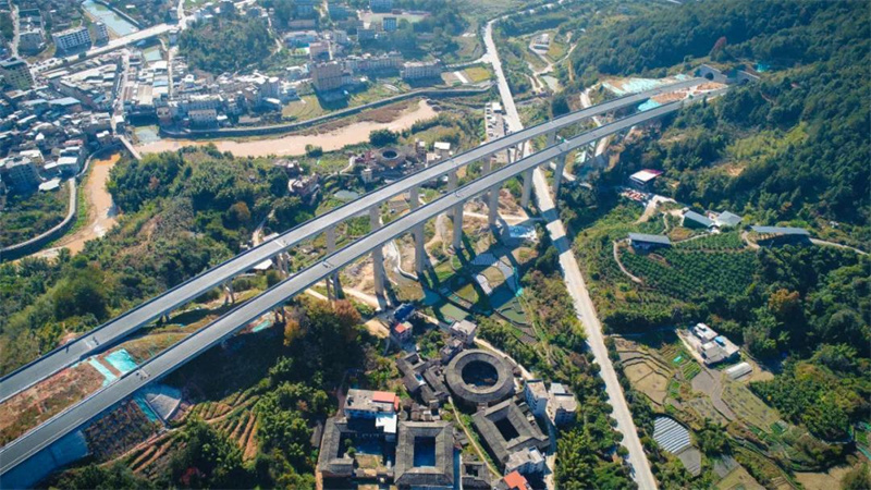 丰村枢纽互通 5 靖永高速通车后将带来哪些影响? 备受瞩目的靖永高速建成通车后,可以和永杭高速相连接,使得永定、上杭和武平三地的联系更加紧密! 随着靖永高速建成通车,永定、上杭、武平三地的群众出行更加便捷,将进一步完善国家高速公路网和海峡西岸经济区高速公路网布局,改善龙岩市通往沿海经济发达地区的交通条件,加快世界文化遗产福建土楼旅游资源整合开发,助力龙岩加快融入闽西南协同发展区和粤港澳大湾区,聚力建设闽西革命老区高质量发展示范区。