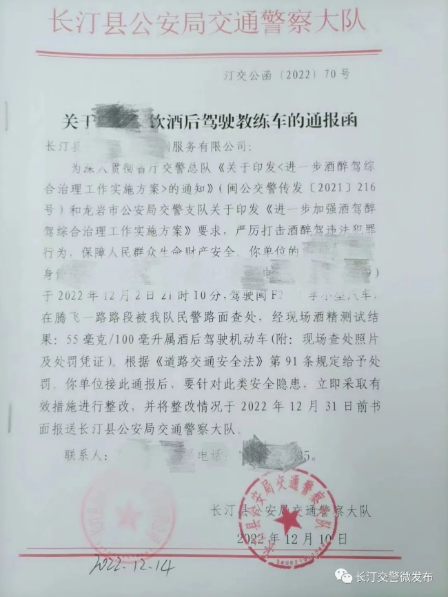 交警提示:开车不喝酒,喝酒不开车,尤其作为驾校教练更应恪守本分,遵规守法,文明驾驶,安全出行! |