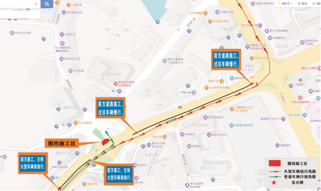 莆田市公安局城厢分局交警大队关于莆阳西路沟头圆圈红绿灯路段占道施工交通管制的通告 因莆田市城厢区月塘南片区排涝工程项目占道施工需要,为保证施工期间道路交通安全、通畅,根据《中华人民共和国道路交通安全法》第三十九条规定,决定对莆田市城厢区莆阳西路沟头圆圈红绿灯路段实行临时交通管制。具体通告如下: 一、管制时间:2025年4月22日至2025年4月30日。 二、管制要求:莆田市城厢区莆阳西路沟头圆圈红绿灯路段实行部分半幅封闭的交通管制,需根据以下图示要求通行。请广大市民提前安排好出行方式和线路,并根据路段路口周边设置的交通标志指示有序通行。 特此通告! 莆田市公安局城厢分局交警大队 2025年4月19日 |