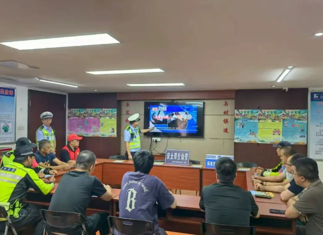 ▲福州交警联合闽运客运企业召开安全教育座谈会,向企业负责人及安全员发放宣传资料并观看警示片,重点警示超员、疲劳驾驶等违法行为。