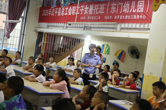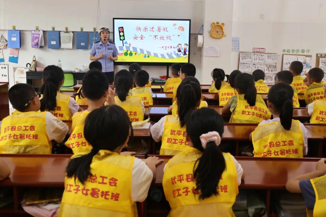 全文内容如下↓↓↓ 7月9日,福建省武平县公安局交管大队联合县总工会,组织警力走进多家幼儿园,向暑期托管班的孩子们开展丰富多彩的暑期安全出行宣传教育,进一步提高孩子们的交通安全意识和自我保护能力。