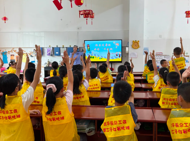 民警辅警还鼓励孩子们争当“交通安全小卫士”,不仅自己要养成文明出行习惯,还要发挥“小手拉大手”的作用,提醒家人自觉遵守交通安全法律法规、共同抵制交通陋习。