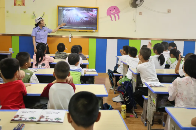 民警辅警根据暑期道路交通特点和幼儿园孩子的认知能力,通过播放交通安全动画视频、展示多媒体课件、集中授课、有奖问答等方式,用通俗易懂的语言讲解交通标识、信号灯、斑马线、安全步行、安全乘车等知识,提醒孩子们走路要走人行道、过马路要走斑马线、不在马路上嬉戏打闹。