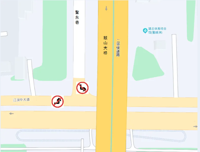 为确保道路交通有序、安全、畅通,根据《中华人民共和国道路交通安全法》第三十九条规定,决定从2025年8月1日起,对北江滨大道辅道(鼓山大桥下)与鳌东巷交叉口北往南和西往东方向实行禁止机动车北往东和西往北左转。