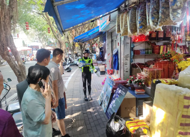 周宁:走访“叮”安全 周宁交警针对车队易发问题,如赶吉时超速、不按道行驶、闯红灯等,向选购婚商铺的群众发放倡议书并进行现场讲解。用真实案例警示后果,叮嘱事主务必提前向车队司机做好“5告知”。