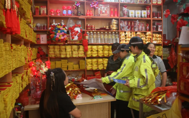 福安:商铺“暖”提示 在琳琅满目的红白喜事用品旁,民警通过发放《倡议书》、摆放生动展板,向来店顾客详细讲解“957”内涵,特别是车队常见的随意变道、闯红灯等违法行为的巨大危害。