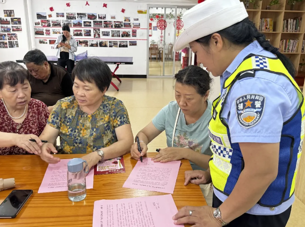 郑重承诺,内化于心 交警向老年人分发《老年人安全出行承诺书》,引导老年人在理解的基础上自愿签署,强化个人安全责任意识。