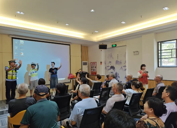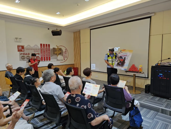 30分钟,把安全刻进日常 充分尊重老人的作息规律和食堂运营节奏,活动时间严格安排在 餐前或餐后的30分钟内。交警准备充分、流程紧凑、讲解精炼,确保在有限时间内传递核心安全信息,既保证了宣传效果,又不影响老人们正常就餐和休息,深受欢迎。