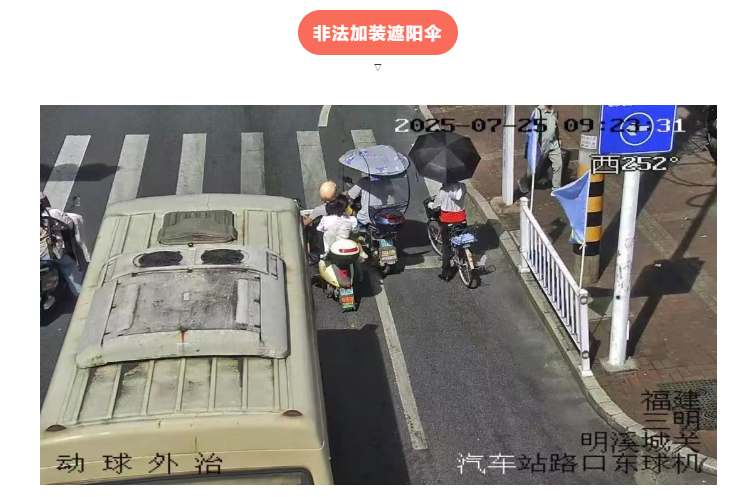 非法加装遮阳伞、不按道行驶