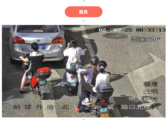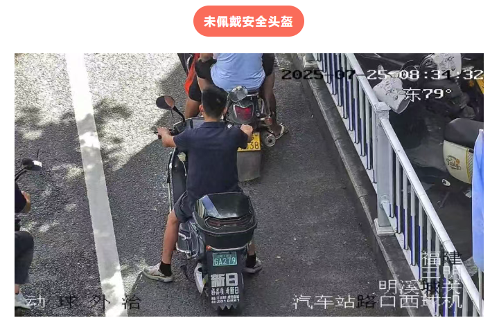 抓拍的未佩戴安全头盔、超员