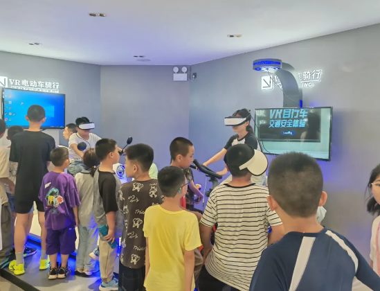 ▲交警支队开放宣传教育基地,开展暑期学生交通安全互动体验