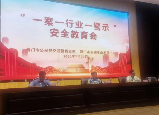 为贯彻全市“道路交通安全专项整治”部署 切实加强道路运输领域安全管理工作 近段时间来 厦门交警联合市交通运输等部门 持续开展“一案一行业一警示”活动 压紧压实交通安全责任链条 7月29日下午,车管所联合市道路运输事业发展中心,召开“一案一行业一警示”活动,全市84家运输企业近百名负责人参加交通安全警示教育会。会上通报了典型事故案例,并组织观看了警示视频,通过以案释法让企业负责人汲取教训,进一步增强交通安全意识,拧紧企业安全管理链条。