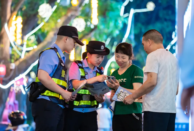 “保护好个人信息,千万别去扫那些来历不明的二维码!”在龙岩市新罗区中央苏区金融街夜市,熙攘的人群中,龙岩市公安局新罗分局民警正耐心地向过往群众讲解典型案例,提醒大家警惕新型电信网络诈骗。这是龙岩公安以宣促防、守好夜色烟火气的生动注脚。 近年来,龙岩公安聚焦夜市摊位、金融街、商超等场所,采取立体巡逻、安全宣防相结合的方式,实施高频次、高密度治安防控,为“夜经济”发展保驾护航。