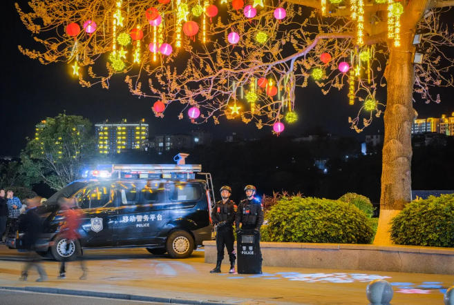 这背后,是漳平公安组建的“平安守夜人”队伍的辛勤付出。这支由民警、商户、志愿者组成的联勤联防力量,每到夜幕降临,便身着反光背心,穿梭在街巷里,共同守护夜市平安。 随着文旅经济的发展,龙岩公安精心打造“定点值守+动态巡逻+科技赋能”社会治安防护体系,在永定土楼、长汀古城、连城冠豸山等景区设置警务点,积极回应游客求助、快速化解各类纠纷问题。同时,整合派出所、交警、巡特警等警力,发动商户平安志愿者、社区网格员力量,开展立体巡防,最大限度提高管事率,织牢安全屏障。