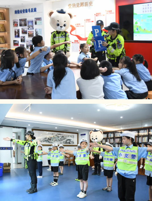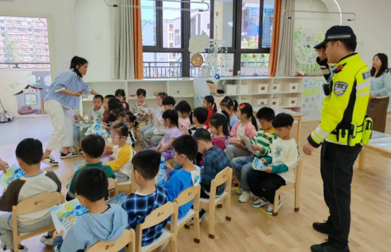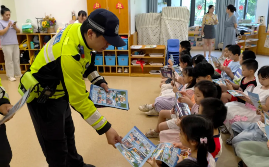 仓山区国投浦口幼儿园暑托班的小朋友迎来了一群特别的“老师”,教室瞬间变成欢乐的小课堂,交警蜀黍用孩子们听得懂、记得住的方式,绘声绘色地讲起了“马路上的小秘密”,潜移默化中把交通安全知识装进孩子们的小脑袋。 “警营”大探秘