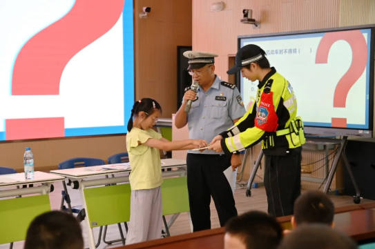 课堂上,民警紧扣学生暑假出行“小日常”,把交通安全知识变成通俗易懂的语言、有趣的现场互动演示,同学们争着参与答题,在笑声和实践中,轻松把重要的交通安全法规装进心里,个个都成了“交通安全知识小达人”! 小柳小学