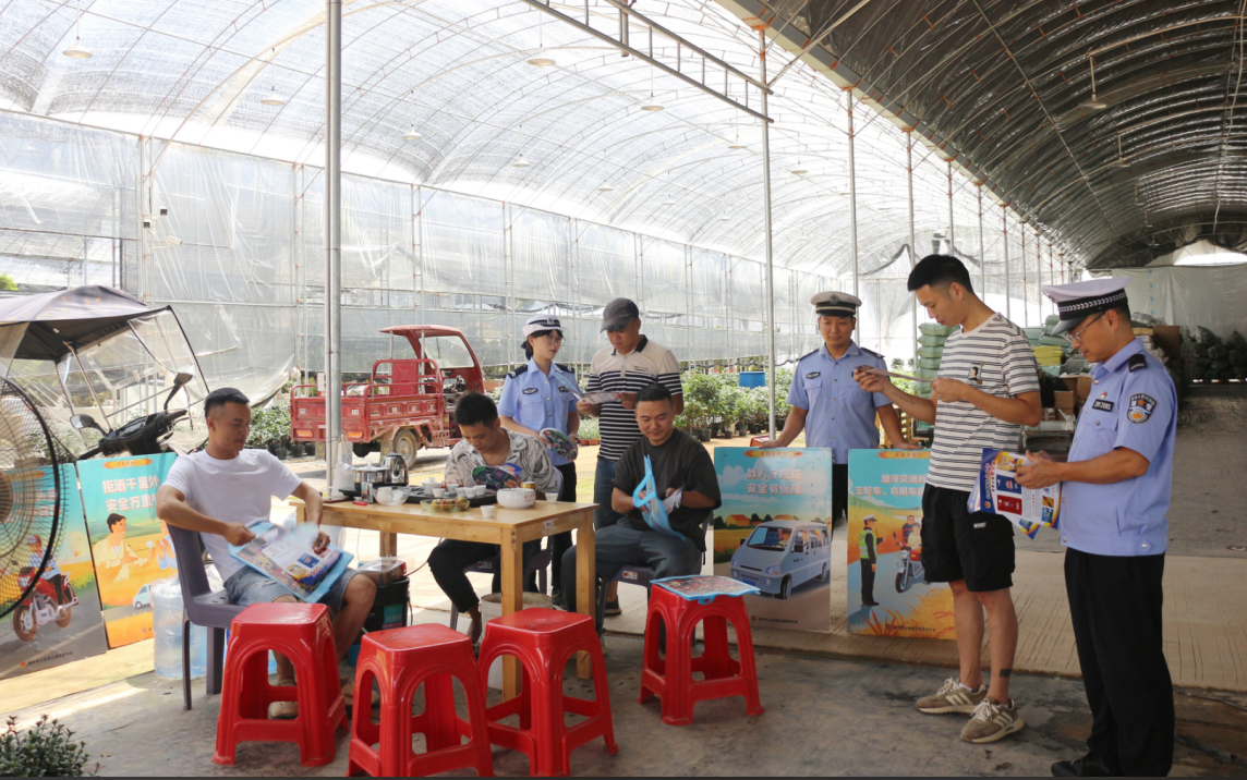 活动中,民警走进乡镇集市、汽车站、花卉种植户等群众集中场所,通过面对面宣讲、发放宣传资料、摆放展板等方式,向现场群众普及道路交通安全知识,重点对酒后驾驶、超员超速、农用车违法载人等违法行为的危害性进行深入宣讲,引导广大群众自觉遵守交通法规,摒弃交通陋习。同时,针对农村“一老一小”群体交通事故多发特点,民警重点讲解如何安全走路、安全乘车等交通安全知识,引导“一老一小”群体牢固树立“文明交通,安全出行”的理念,不断提升自我保护能力。民警还结合“一盔一带”交通安全宣传教育活动,以近期辖区农村典型交通事故案例为切入点,采用接地气的语言,通过“大喇叭”播报形式,提醒群众自觉养成“驾乘摩托车、电动车戴好安全头盔,驾乘汽车全员全程系好安全带”的好习惯,远离交通事故的伤害。