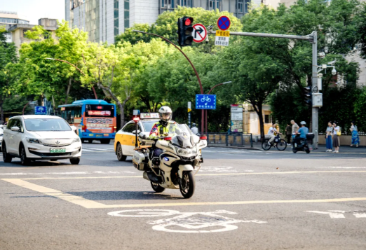 机动特勤大队铁骑冒着高温酷暑,驾驶大功率警用摩托车,在城区不间断开展动态巡逻,严密监控路况,快速响应处置,保障交通动脉安全畅通。