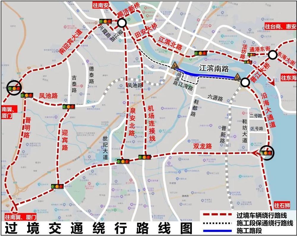 晋江晋新路延伸线(刺桐大桥—晋江大桥)进行快捷化改造 江滨南路(鞋都路—晋江大桥)实施管制 记者昨日获悉,因晋江晋新路延伸线(刺桐大桥—晋江大桥)快捷化改造工程第二阶段施工需要,江滨南路(鞋都路—晋江大桥)将进行分段半幅封闭施工。为确保施工期间道路交通安全、畅通、有序,交警将对江滨南路(鞋都路—晋江大桥)施工路段实施交通管制。管制时间从2025年8月24日10时起至2026年12月31日24时止。届时,晋江江滨南路鸿源路至晋江大桥整段都将交通管制,提醒广大司机朋友提前选择绕行线路。