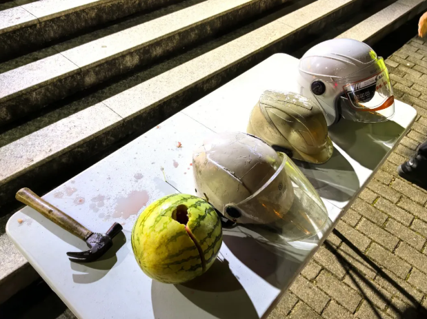 “西瓜实验”生动上演 一敲就懂头盔保命原理