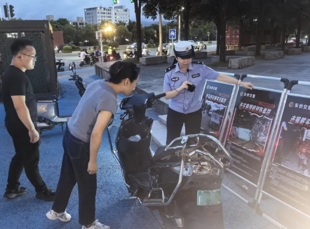 宁德交警调集本地事故现场遗留的电动自行车和二三轮残骸车辆以及因事故撞击导致严重破损的安全头盔,通过拖车运载至活动现场进行公开展示。 这些扭曲变形的实物,无声地诉说着事故的惨烈程度和破坏力。交警结合残骸,深入剖析事故成因,重点强调佩戴符合国标的安全头盔、遵守交通法规在关键时刻对保护生命的决定性作用,警示效果深入人心。