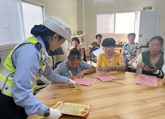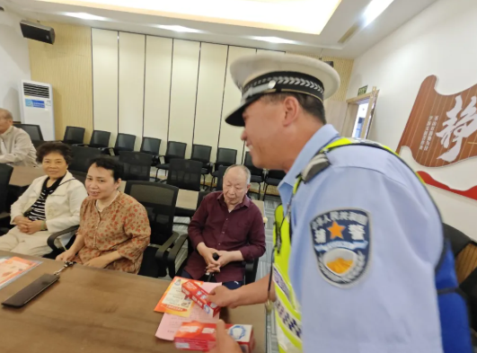 趣味互动,知识在欢笑中扎根 交警精心设计了主题趣味游戏,将交通安全知识融入游戏环节。老年朋友在参与游戏的过程中积极互动,现场氛围活跃,在轻松的氛围中加深了对知识的记忆,实现了“寓教于乐”的良好效果。