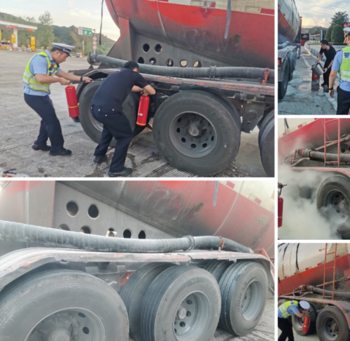 抵达现场后,民警先用警车上的灭火器对着火轮胎灭火,同时在车后做好安全布控;随后联合政和收费站工作人员共同灭火,半小时后火势得到控制。为防二次事故,民警同步对过往车辆进行警示疏导,后续又通过接水降温,历经 1 个多小时终将火彻底扑灭。 经了解,此次货车自燃因驾驶员在杨源隧道群行驶时,长时间使用刹车导致轮胎、刹车片过热;驾驶员本想在政和收费站下匝道后给车辆降温,不料匝道内轮胎突发炸胎并起火。所幸处置及时,最大程度降低了损失。民警随后对驾驶员进行批评教育,要求其出车前务必检查车况,行车途中也要随时关注车辆状态,确保安全。