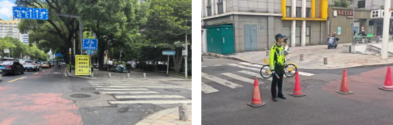 警校携手守护平安路 福州交警在温泉公园路与福寿巷交叉口部署警力疏导交通,并联合学校家委会志愿者共同护送学生,保障通行安全。