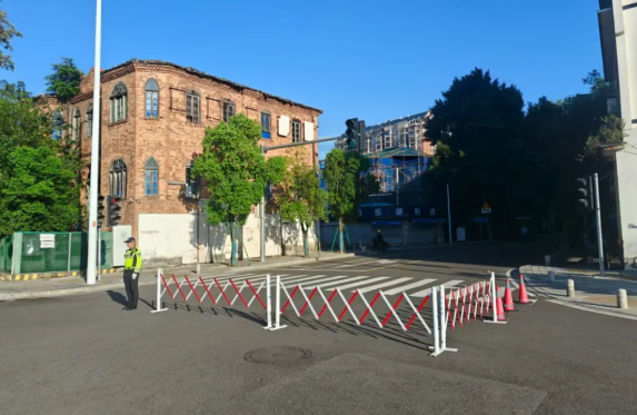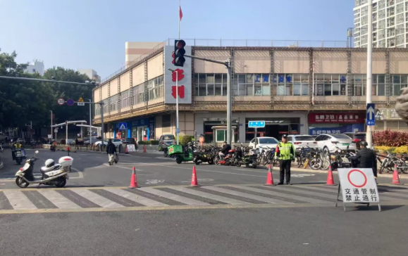 03 福州第八中学 高峰时段临时交通管制 上、放学时段,福州交警将在广达路与安南路交叉口实行临时机动车管控措施,确保交通顺畅与学生安全。