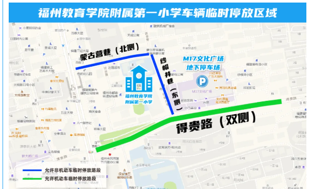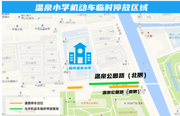 设置机动车临时停放区域 放学期间,福州交警将对福寿巷实施临时交通管制。温泉公园路北侧(公益南路路口至学校南门路段)允许机动车临时停放。