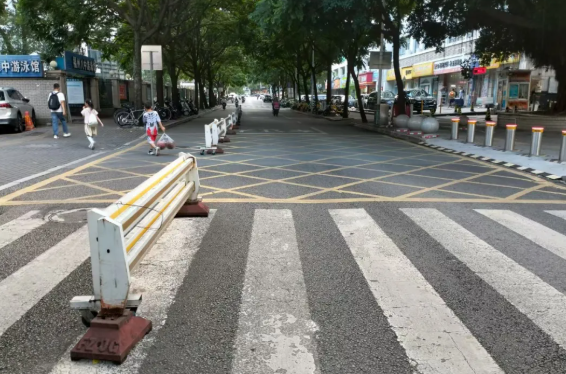 设置机非隔离护栏 铺前顶路南侧机动车道设置机非隔离护栏,开辟机动车专用通道,供家长车辆及社会车辆通行。