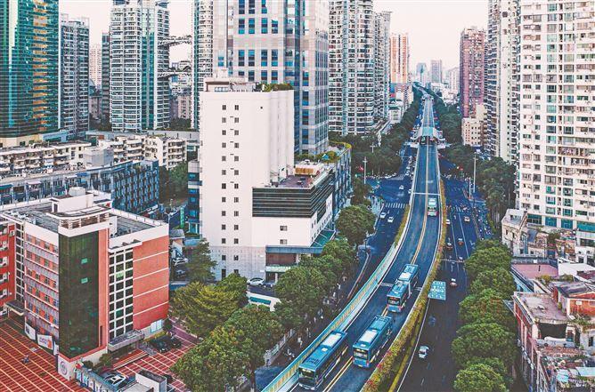 厦门BRT不仅实现了路权的完全专用,还通过智慧调度,让市民乘客出行更便捷高效。图为BRT厦禾路段。(记者 林铭鸿 摄)