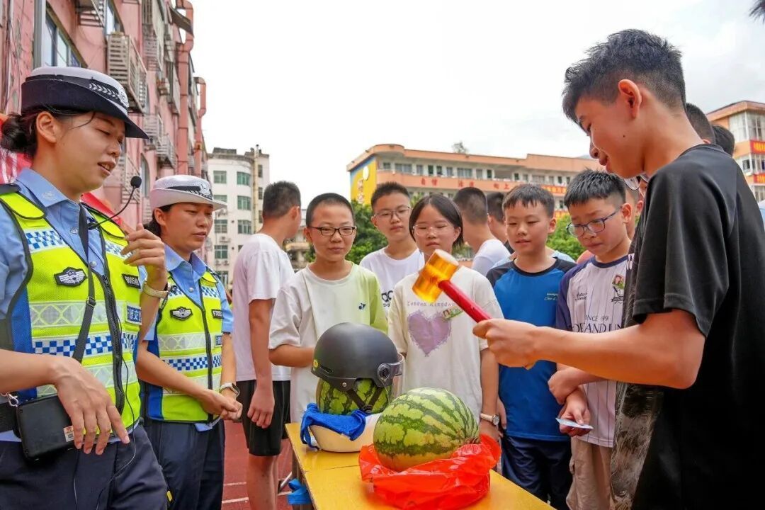 交警向学生们普及遵守“一盔一带” 安全规定等交通常识。 “交警姐姐用生动的案例为我们讲解了容易被忽视的交通细则,而事故警示视频让我深刻认识到违规通行的严重后果。这堂课不仅形式多样,更让我真切体会到‘道路千万条,安全第一条’的深刻含义!”宁德市第十中学初一新生高成杰在课后深有感触地说道。 从特种设备安全到道路交通安全,两堂不同场景却同样重要的“开学第一课”,为孩子们的健康成长穿上一件坚实的“安全铠甲”。 多元课堂“串”起来 文明技能装满袋 围绕文明素养的多元内涵,宁德多地整合教育资源,精心打造了融合爱乡情怀、法治意识、生态理念与创新思维的主题课堂,为“开学第一课”注入丰富而深刻的文明底色。 在柘荣县乍洋中心校,一场别开生面的“知识盛宴”正在上演。来自乍洋乡新时代文明实践站及多个部门的工作人员化身“跨界讲师”,为同学们讲述水资源保护的重要性、校园欺凌的危害与应对,以及传递尊老爱幼、团结同学的传统美德。
