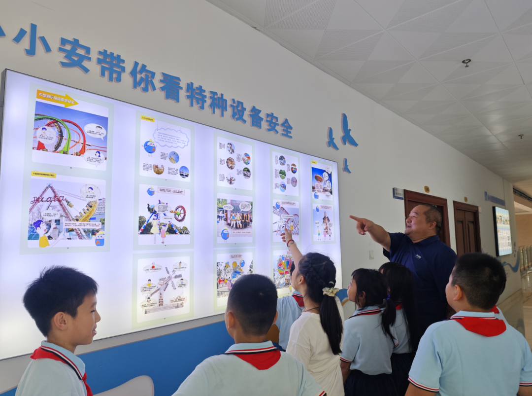 福安市实验小学龙江校区学生演绎“从历史走来”情景快闪。 福安市实验小学龙江校区的活动现场同样感人至深。操场上,“抗战精神传承队”的学生们,以一场活力四射的“从历史走来”情景快闪,拉开了“开学第一课”的序幕。 “为革命守家、为红军筹粮······这就是我们福安的革命老妈妈潘玉球。”福安市新四军研究会顾问、宁德市职业技术学院党委原副书记刘少华同志,作为革命老妈妈潘玉球的后代代表,动情讲述潘玉球冒死搭救革命同志的赤诚事迹,鼓励师生从脚下的土地和身边的历史中汲取前进的精神力量。 通过这些浸润人心的红色教育,革命先辈的理想信念正在新时代少年心中生根发芽,续写着红色基因的时代新篇。 安全知识“动”起来 成长铠甲随身带 “叮——” 电梯模型突然“停运”,宁德市特种设备安全科普教育基地里,讲解员的声音沉稳响起:“别慌,按下这个紧急按钮,救援人员就会来。” 来自宁德师范学院附属小学的同学们,在讲解员的引导下,依次参观电梯、锅炉、压力容器、起重机械和大型游乐设施模型展区,通过动画演示、互动操作和实物讲解,孩子们在沉浸体验中掌握了安全使用规范,理解了特种设备背后的科学原理。