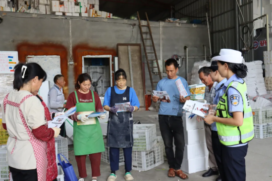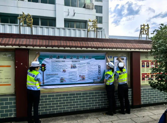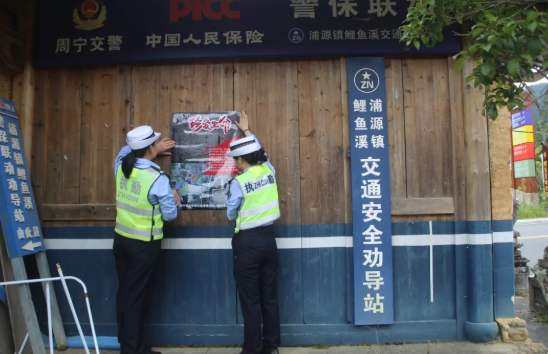 悬挂宣传横幅 农村地区精准发力 守护乡村平安路 交警利用流动喇叭循环广播交通安全知识,走村入户与村民“唠家常、讲安全”,并在村务公开栏张贴通俗易懂的宣传海报。