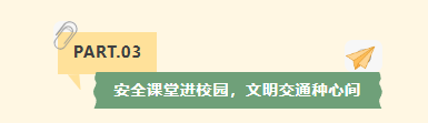 走进中小学校开展 “知危险,会避险”主题教育 通过生动讲解、互动体验等方式 普及交通安全知识 引导学生从小树立文明交通意识 做交通安全的践行者和传播者 温馨提示 开学期间 请广大驾驶人 尽量避开学校周边路段 合理选择出行时间和方式 遇学生过马路请耐心避让