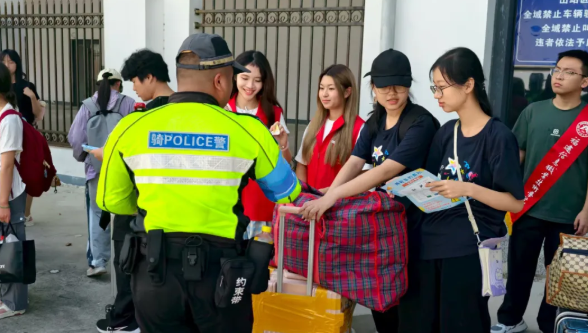同时,平潭公安交警协同君山支队高铁警务大队,在出站口、地下停车场等关键区域加强引导,为学生提供咨询、指引等帮助,对报到新生开展交通安全宣传,提高学生们的交通安全意识,确保学生出行安全。