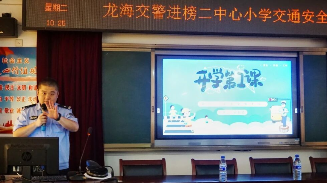 ▲古雷交警大队副大队长曲立彬、教导员曾育丹分别带队走进古雷中心学校、漳州古雷港经济开发区第一实验小学授课,结合当前日益复杂的交通环境,向同学们强调交通安全的重要性,并要求学校切实推行“1530”安全教育模式。