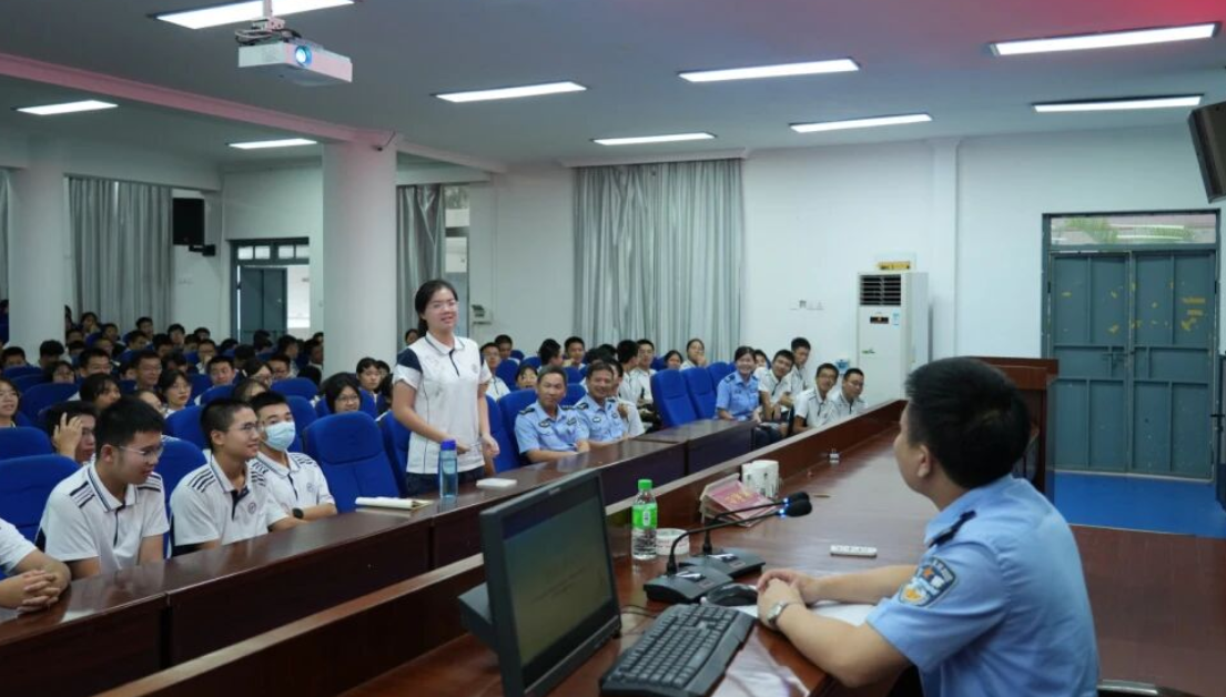 ▲长泰交警大队大队长杨泰源带队走进长泰职业技术学校,介绍了当前道路交通面临的形势和学生群体中常见的交通安全风险点。