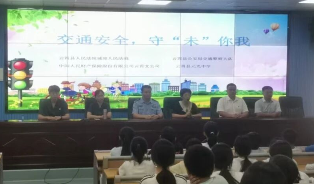 ▲云霄交警大队副大队长施福山带队先后走进云霄一中分校、元光中学,讲解校园周边道路交通状况,现场为学生们答疑。