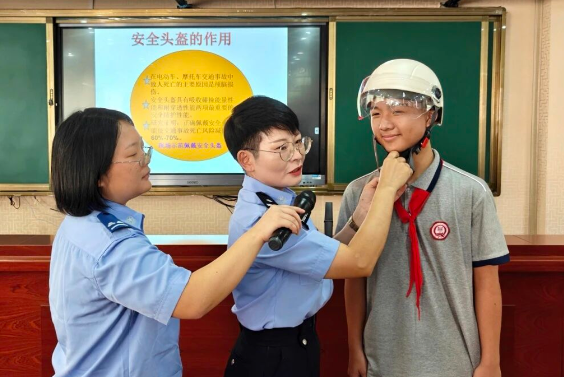 ▲开发区交警大队副大队长柯俊强带队走进厦门大学附属实验中学,重点强调了中学生骑行电动车存在的安全隐患。