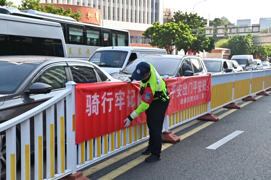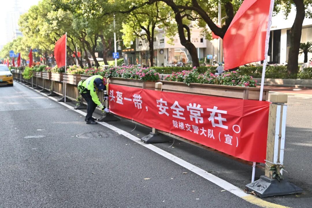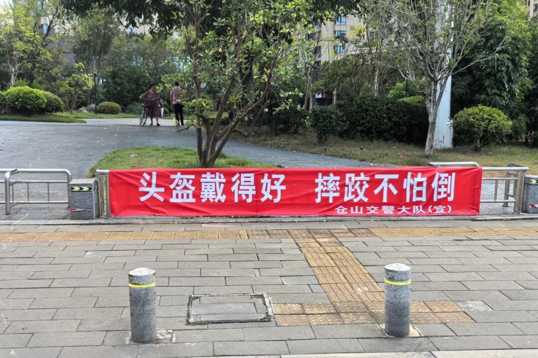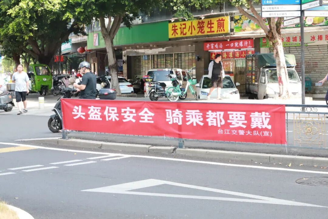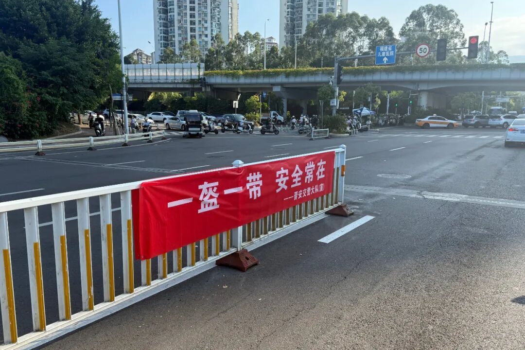 织密街头“安全提醒网” 福州交警在各大路口、校园周边的醒目位置,广泛悬挂起一条条朗朗上口的安全横幅。一条条简洁有力的标语,如同一位位无声的“安全监督员”,每日向过往的骑乘者发出最直观的提醒,让“骑乘戴好头盔”的安全理念在街头巷尾深深扎根。