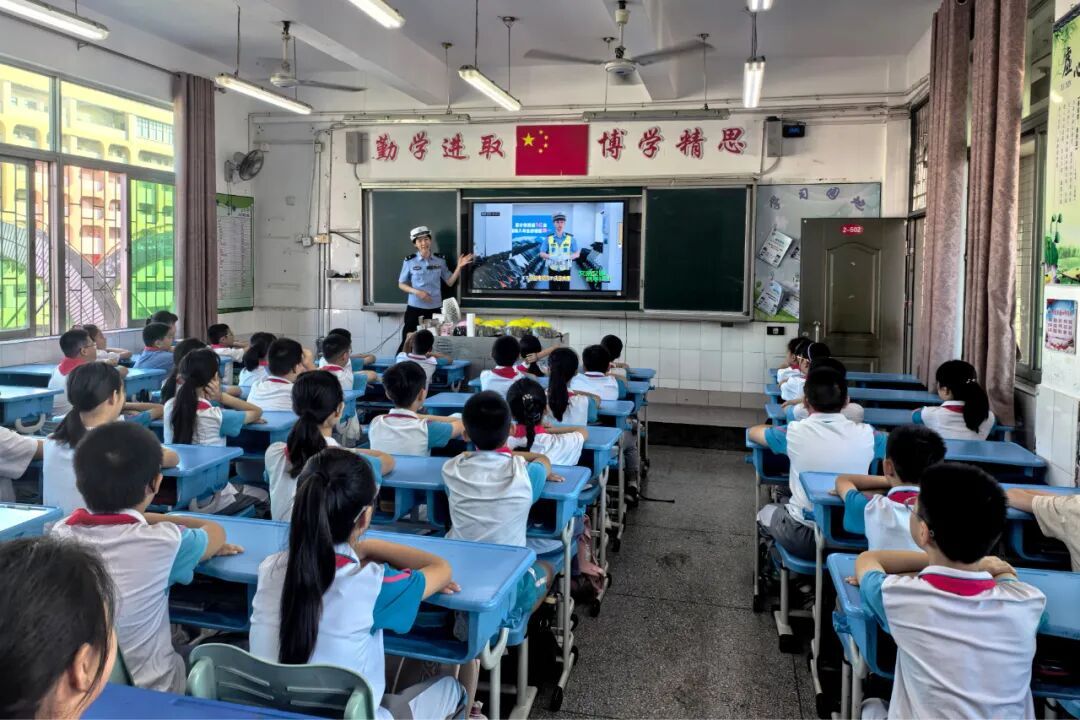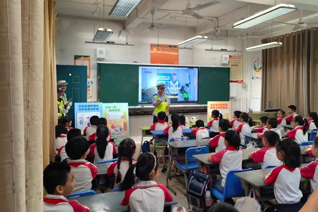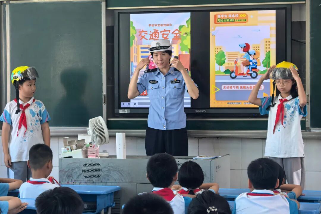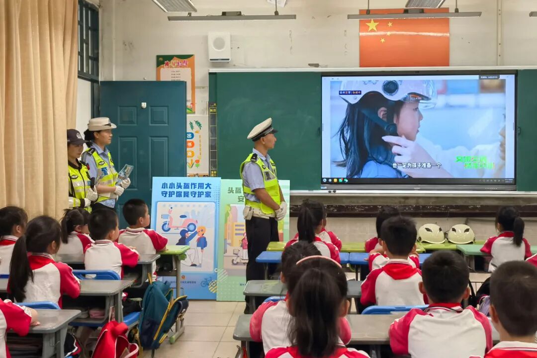头盔安全小课堂开讲啦 交警蜀黍们带着特别的“安全礼包”走进校园,为孩子们开讲一堂别开生面的头盔安全小课堂。课上,交警通过趣味问答、模型演示等互动方式,让孩子们在欢声笑语中牢记了“小小头盔作用大,骑行时刻要戴它”的安全知识,将安全的种子播撒进童心。