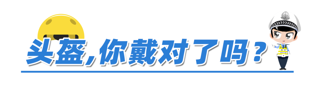 对电动自行车骑乘人员来说 安全头盔是非常关键的保护设备 戴和不戴,在遭遇交通事故时 结局大相径庭 在电动自行车交通事故中,不戴头盔的致死率远远高于其他因素。据了解,涉及电动自行车骑乘人员的交通死亡事故中,约80%是颅脑损伤致死,当事故发生时,安全头盔可吸收大部分撞击力,对头部起到缓冲减震的保护作用,避免致命伤。孩子年龄越小,头部越脆弱,更需要头盔的保护。 此外,“虚戴头盔”和不戴头盔一样 根本起不到保护作用 戴着头盔不系好安全搭扣 稍一颠簸,或者一旦受到碰撞 头盔很容易弹飞出去 头盔的佩戴效果为“零”