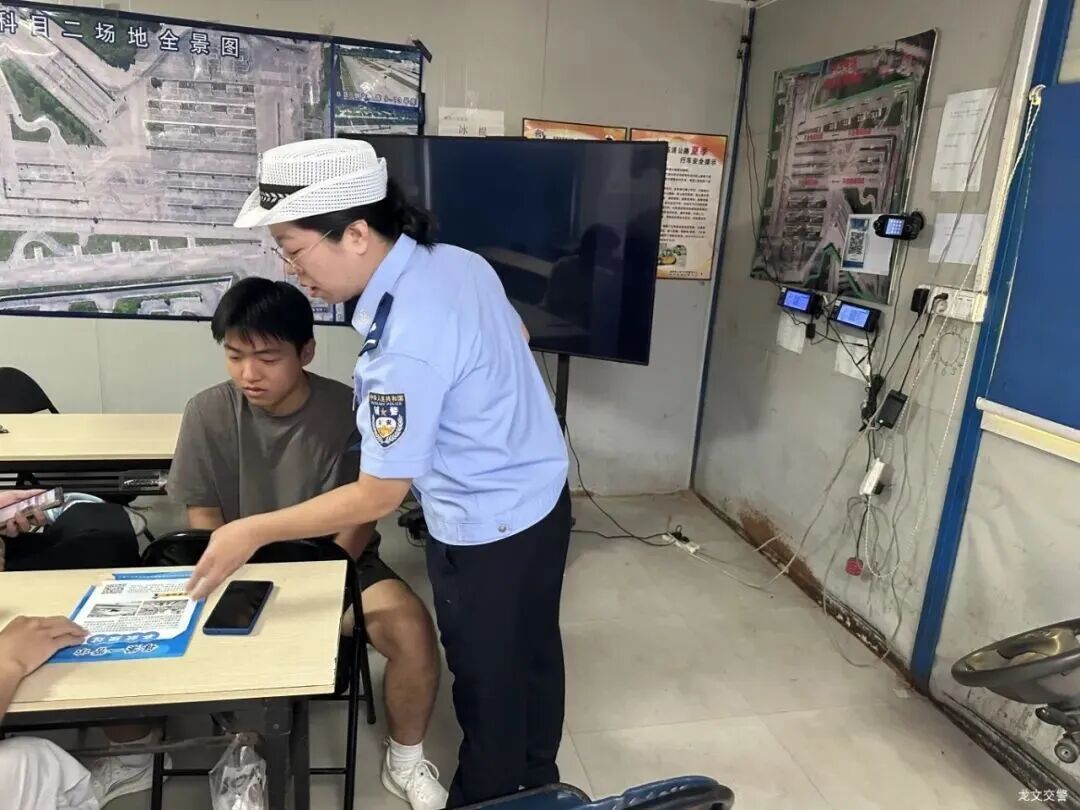 为提高驾考学员的 交通安全意识 筑牢预防道路交通事故的 第一道防线 龙文交警走进辖区驾校 开展进驾校交通安全宣传活动 为切实提升驾校学员的交通安全意识,从源头上筑牢道路交通安全防线,近日,龙文交警走进辖区飞鸿、泰强驾校开展交通安全宣传活动,筑牢交通安全第一道防线。 飞鸿驾校
