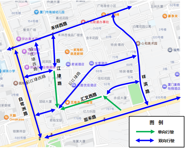 交通限行措施 2025年12月11日至2026年1月31日,思明区后江埭路(后江埭西路口至禾祥西路口段)机动车由双向行驶调整为由北往南单向行驶,禁止机动车由南往北通行,受限机动车请绕行汇文西路、白鹭洲路、后江埭西路及禾祥西路等周边道路。