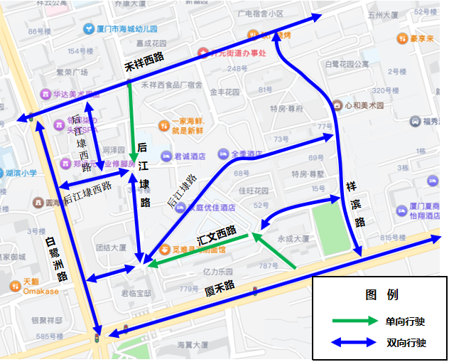 交通限行措施 2025年10月22日至12月10日,思明区后江埭路(后江埭西路口至汇文西路口段)机动车由双向行驶调整为由北往南单向行驶,禁止机动车由南往北通行,受限机动车请绕行汇文西路、白鹭洲路、后江埭西路及禾祥西路等周边道路。