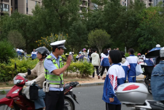 ▲放学高峰在校园路口执勤 五年前,他脱下“橄榄绿”,换上“警服蓝”。五年军旅,将他锤炼成钢;五年护学,更让坚钢淬炼出绕指柔。一千八百多个清晨与黄昏,他在这不足百米的道路上,用脚步走出了上万公里的守护,织就校园周边最坚实的安全网。
