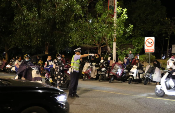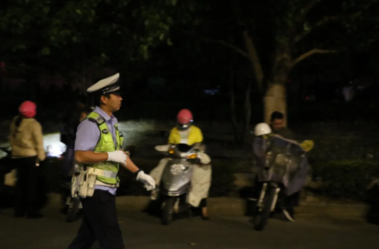 ▲夜巡保畅,维护校园交通秩序 晚自习结束的夜色中,卢女士的摩托车熄火堵路。杜欣未多问一句,一个手势定格车流,便俯身帮她把沉重的车推至路边。“前面有修车铺,待会我帮你拖去。”没等“谢谢”说出口,他已重回岗位。那抹荧光绿,是让所有人安心的信号。