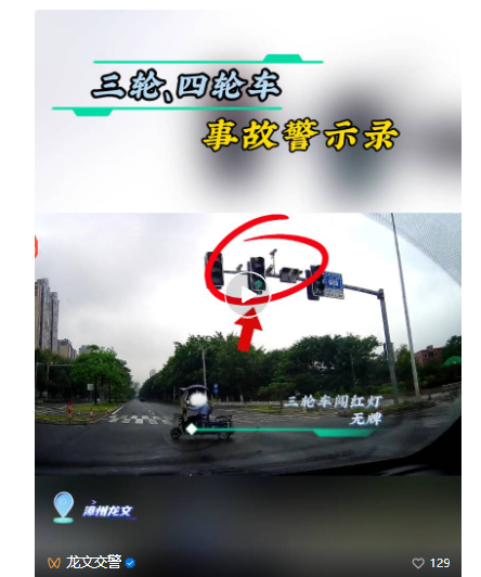 针对三轮车违规载人、闯红灯、逆向行驶、非法改装等交通违法行为,龙文交警采取“定点+流动巡查”模式,在辖区重点路段开展集中整治行动。 宣教结合“润人心” 提升安全意识 龙文交警深入辖区吾悦广场、万达商圈、村庄、快递站点等人员聚集的地方开展交通安全宣传,重点讲解三轮车交通违法行为的危害性,劝导广大交通参与者自觉抵制电动三轮车违法载人、闯红灯、逆向行为等违法行为,共同营造和谐的道路交通环境。